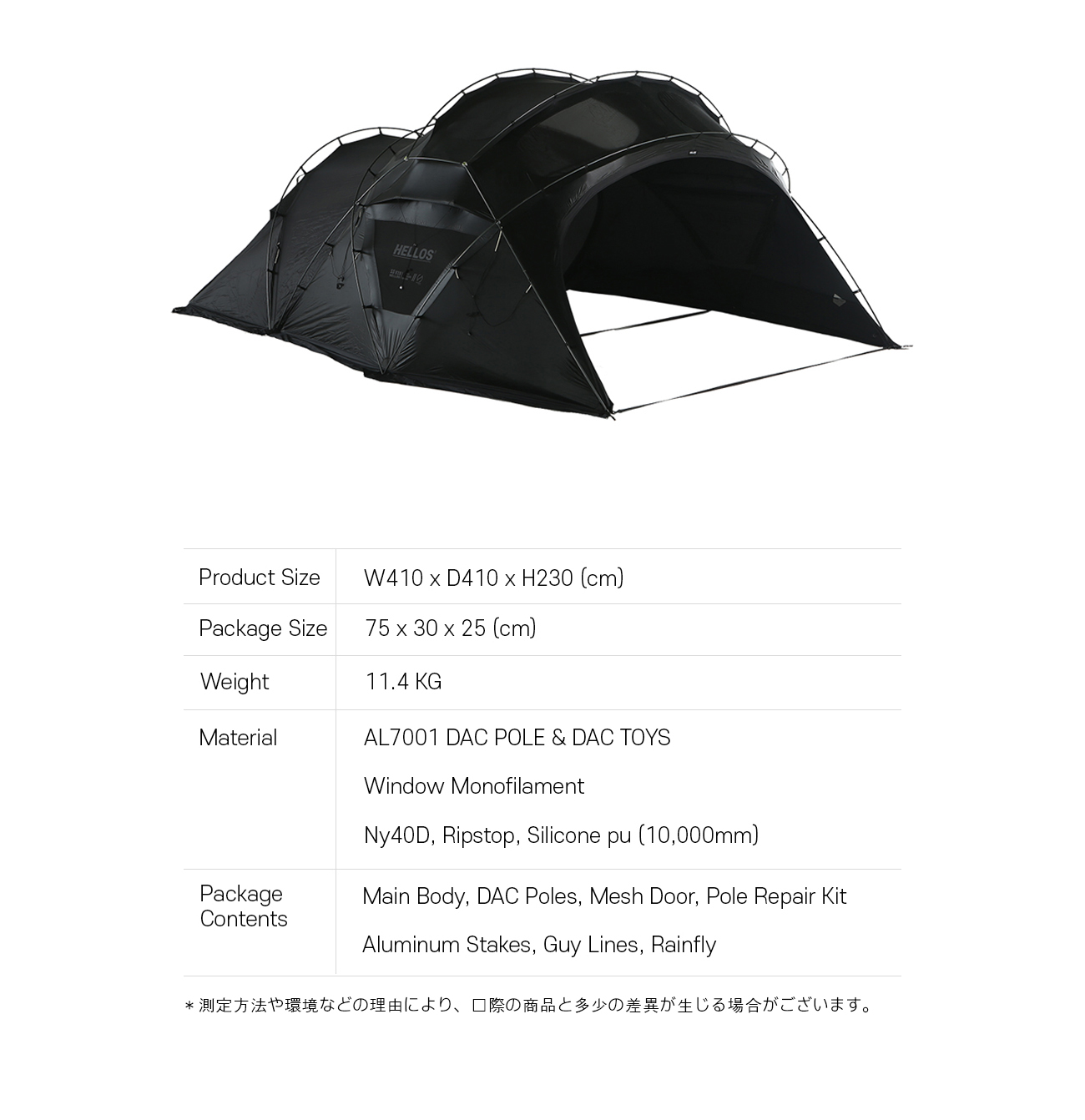 韓国のアウトドアブランド HELLOS のメイン製品「Slug Shelter」です。